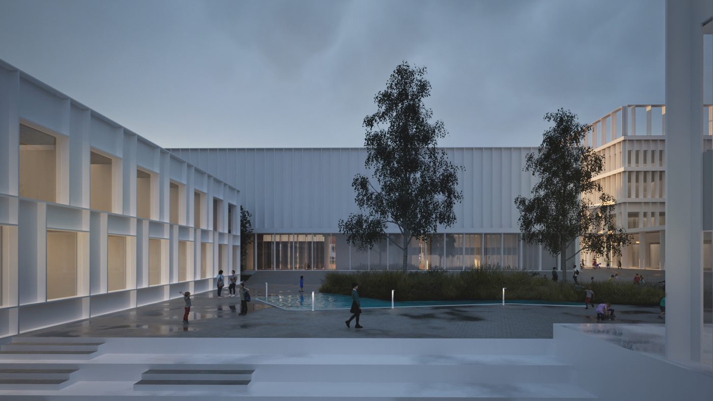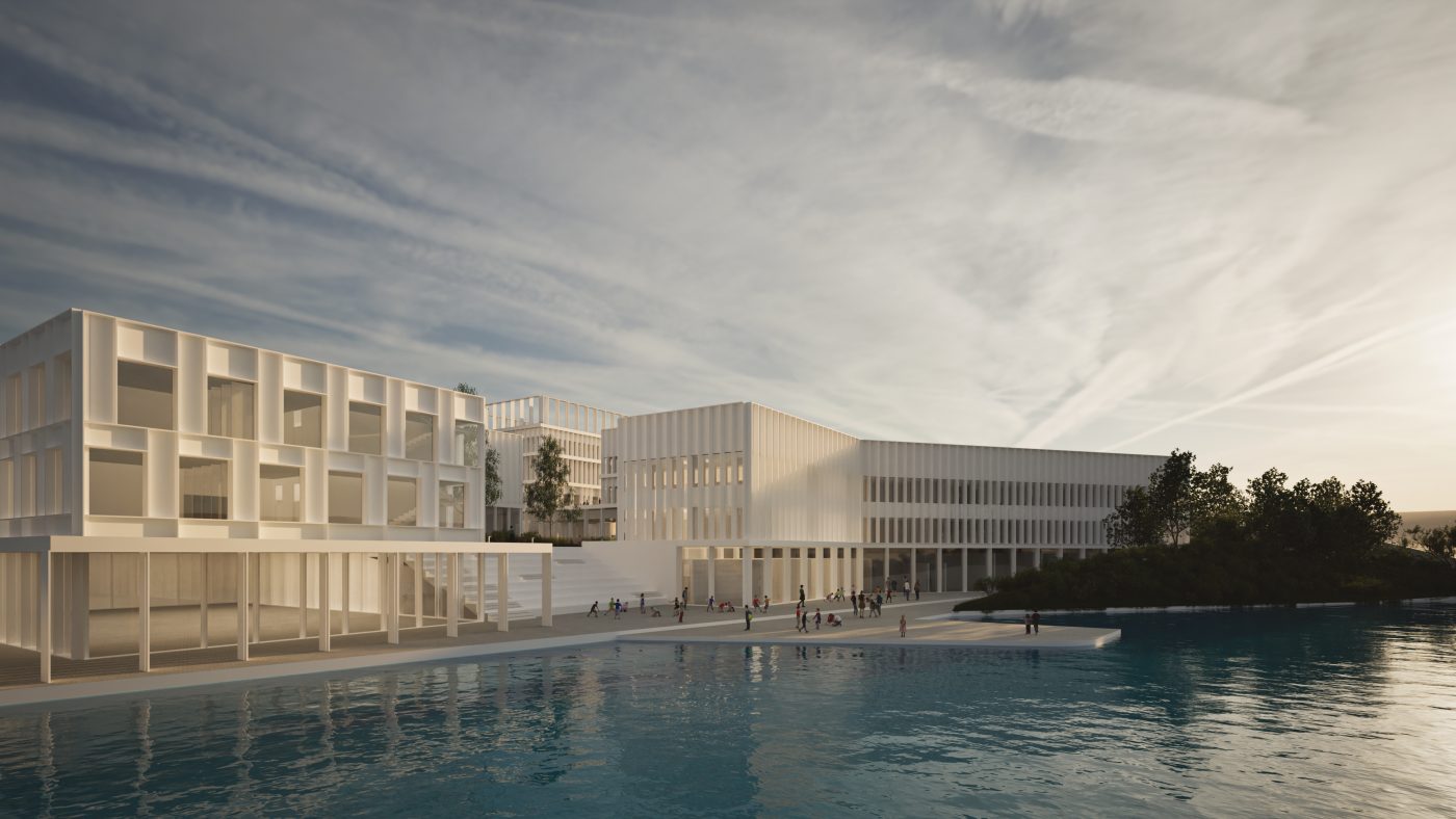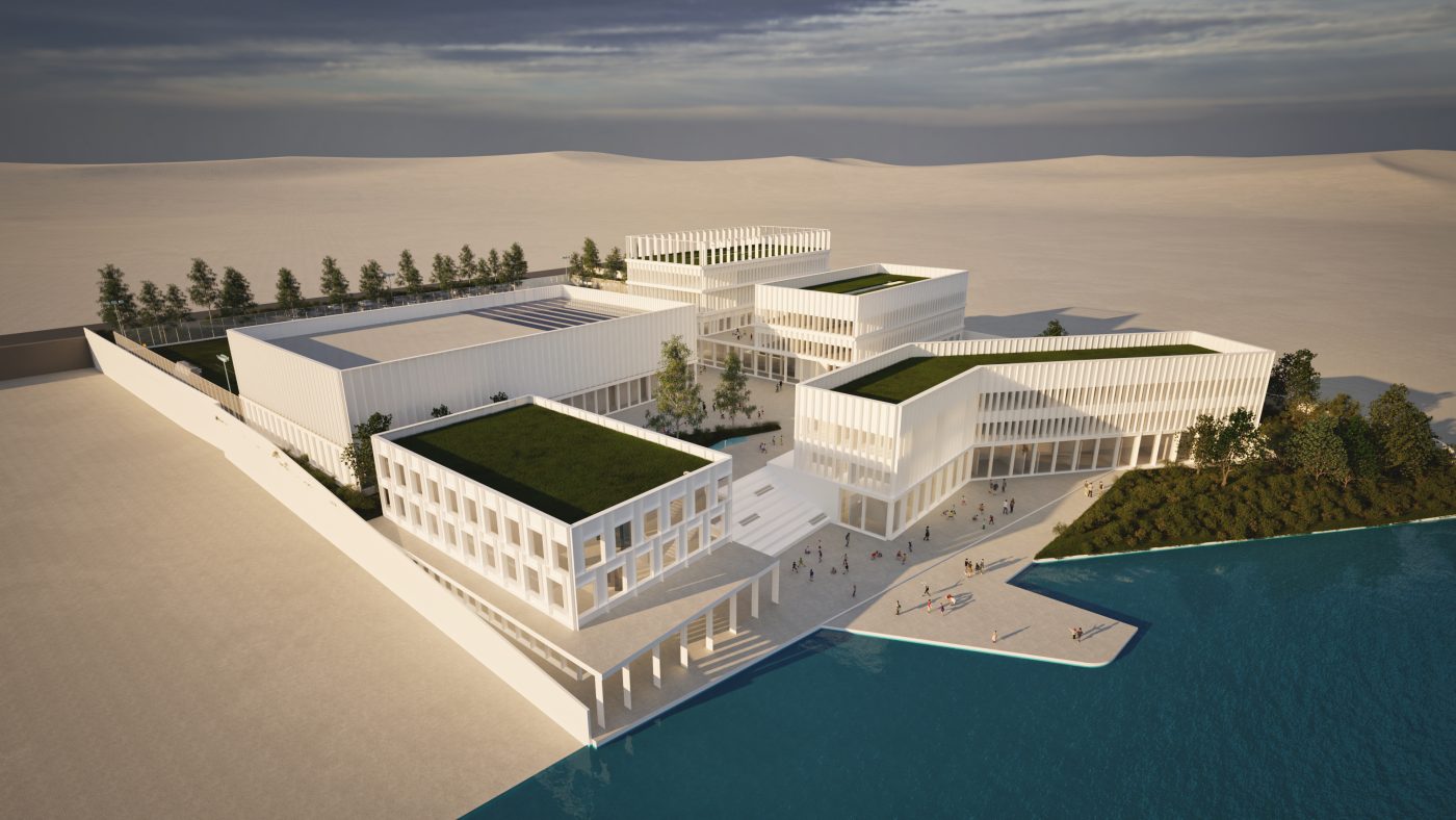 The Campus is comprised of several interconnected buildings, each crafted with great attention to detail to enhance the user experience. The campus design integrates a school and a kindergarten, creating a seamless learning journey from early childhood to advanced learning stages. Next to the school and kindergarten isc clinic and wellness center, where therapeutic spaces are blended with areas dedicated to physical wellbeing. The clinic and wellness center are designed with a deep respect for functionality and aesthetic appeal, creating a space that promotes holistic well-being. a modern kineti