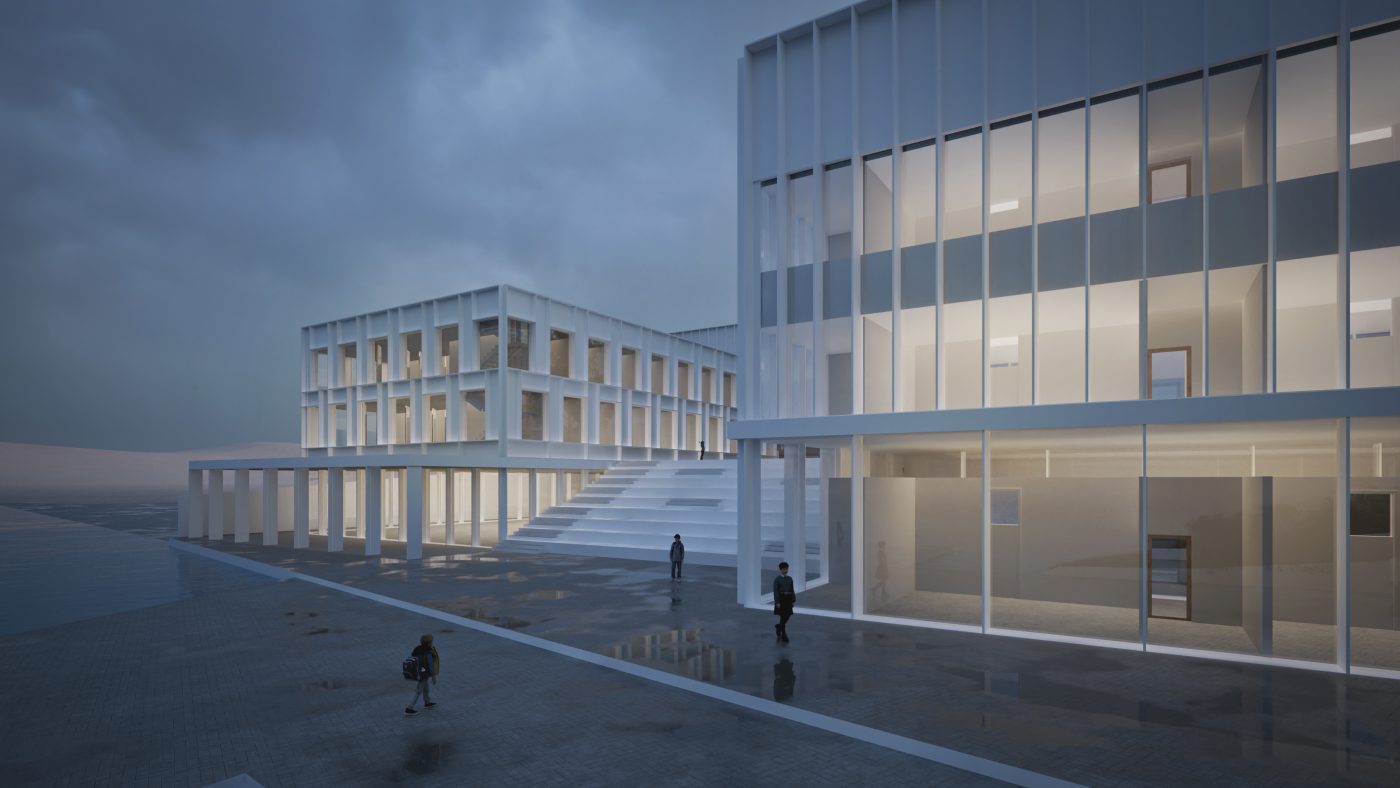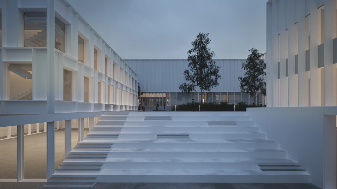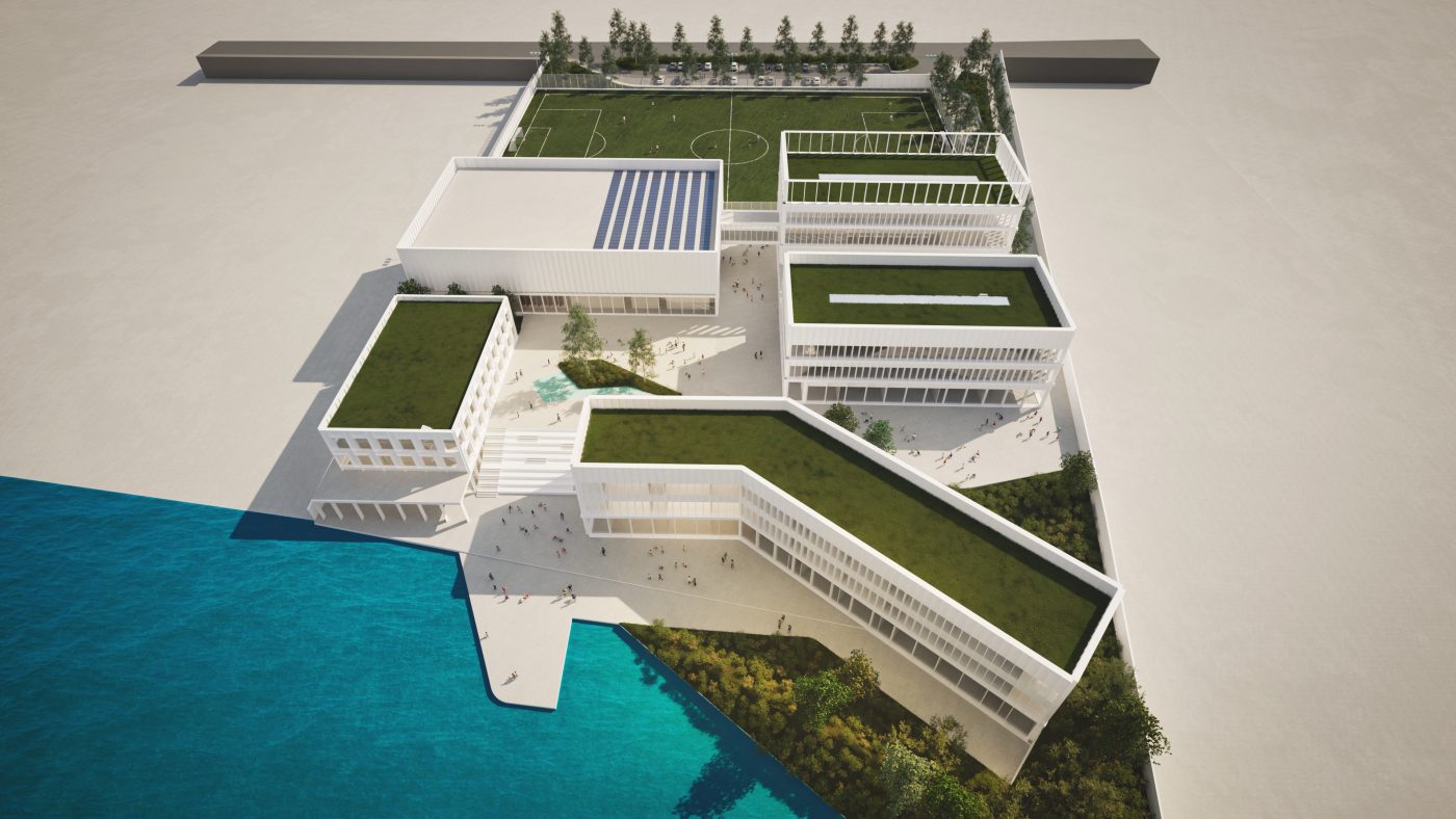The Campus is comprised of several interconnected buildings, each crafted with great attention to detail to enhance the user experience. The campus design integrates a school and a kindergarten, creating a seamless learning journey from early childhood to advanced learning stages. Next to the school and kindergarten isc clinic and wellness center, where therapeutic spaces are blended with areas dedicated to physical wellbeing. The clinic and wellness center are designed with a deep respect for functionality and aesthetic appeal, creating a space that promotes holistic well-being. a modern kineti
