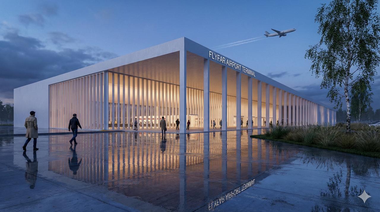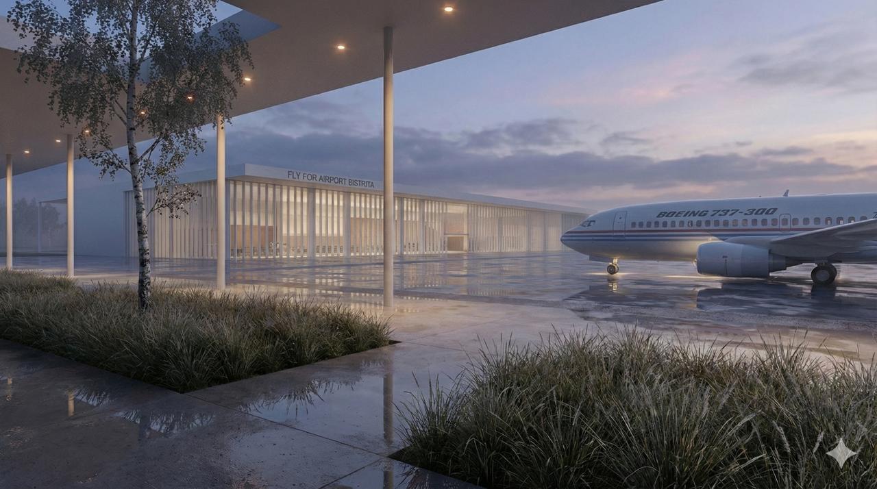 Fly Far Airport Bistrița is a preliminary architecture and urbanism concept for a regional airport and strategic NATO base located in the outskirts of Buduș, Bistrița-Năsăud. Developed for FAR Foundation S.R.L., the project envisions a multimodal transport hub for North-West Romania that combines commercial passenger aviation, cargo logistics, and aeronautical maintenance. The infrastructure is designed to meet NATO interoperability standards, serving as a strategic asset on the eastern flank of the Alliance. This dual-use facility aims to integrate civilian and military functions within a cohesive, modern architectural framework