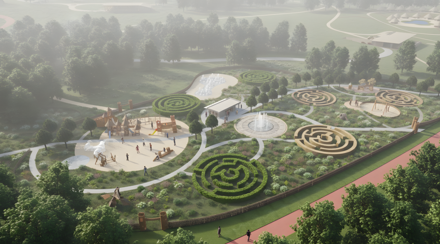 The masterplan includes a wide range of facilities designed to accommodate diverse guest requirements and ensure year-round operations. Planned infrastructure includes various lodging tiers—from full-service hotels to cabin resorts—alongside a craft market, a wedding barn, a winery, and a spa. These facilities are complemented by professional amenities such as conference halls and music stages, allowing the site to host a variety of events, from corporate retreats and school excursions to large-scale cultural festivals.